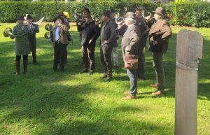 Bläserobmann der Büdinger Jagdhornbläser Willi Wenzel, der gemeinsam mit Hans-Dieter Stehr die lange unterbrochene Verbindung zur Landpartie wiederherstellte, nutzte die Gelegenheit, im Namen des Jagdvereins Hubertus Büdingen e.V. die Jagdhornbläser vorzustellen. Durch ihn wurden auch alle Stücke anmoderiert und etwas über die Geschichte dieser vorgetragenen Stücke, das Brauchtum der Jagd sowie das Jagdhorn erzählt.