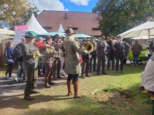 Das Organisationsbüro Landpartie Schloss Büdingen GbR, Herr Arnold Emke flanierte gemeinsam mit unseren Büdinger Jagdhornbläsern über das Gelände. Neben dem Schlosshof wurden an 3 verschiedenen Orten sowie 2-mal auf der großen Bühne weitere Signale aus der Jagd sowie verschiedene Märsche wie der Hubertusmarsch, Hessischer Jägermarsch, Waldkauzpolka, Hegewaldfanfare und der Tiroler den begeisterten Besucher/innen vorgetragen, um nur einige zu nennen.