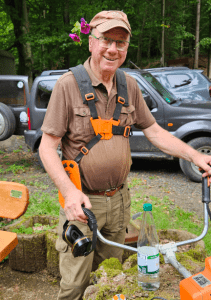 Unser Jagdhornbläser Willi Wenzel versteht auch mit dem Freischneider umzugehen.