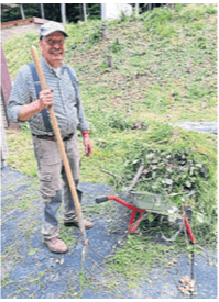 Arzt Dr. Wolfgang Daniel ist sich nicht zu schade, den Grasschnitt abzutransportieren.