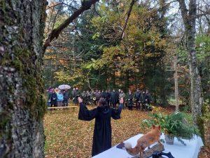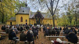 Am 26. Oktober 2025 ertönten die Signale der Jagdhörner im Wickstädter Wald an der Kirche Maria Sternbach mit allen Jagdhornbläsern der Wetterau. Für den feierlichen Rahmen sorgten nicht nur die Jagdhornbläser aller Jagdvereine aus der Wetterau, sondern auch Jäger/innen mit ihren Hunden und Greifvögeln.