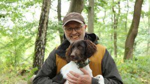 Hundetrainer Michael Kraft mit dem vier Monate alten kleinen Münsterländer Welpen Floki. »Hunde brauchen klare Regeln, wie im Rudel. Solche Strukturen geben Sicherheit und sichern das Überleben«, sagt er im Interview. © Naomi Madlene Ott
