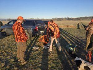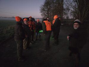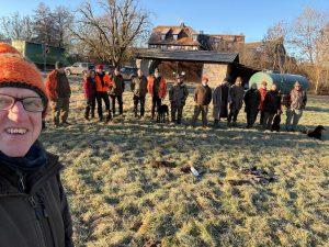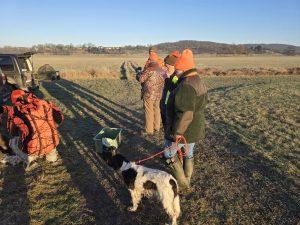 Jäger/innen hinter der gelegten Strecke im Revier Glauburg